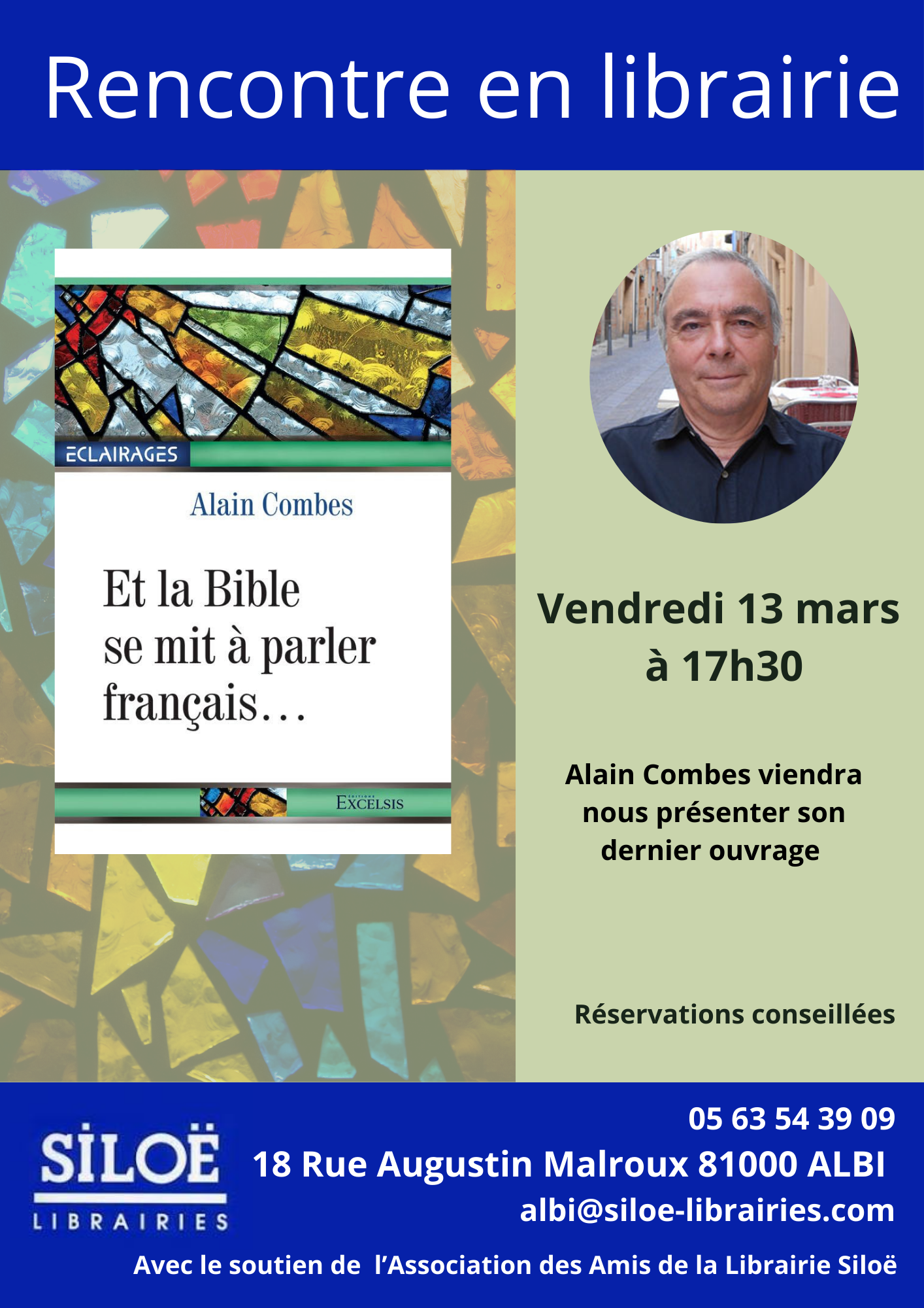 Alain Combes viendra nous présenter son dernier ouvrage « La bible se mit à parler français… » le vendredi 13 mars a 17h30.